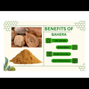 Baheda Powder (also spelled Bahera, from Terminalia bellirica) is one of the three fruits in the famous Ayurvedic formula Triphala (along with Harad and Amla). In Ayurveda, it's known for its cleansing, rejuvenating, and balancing properties, especially for the Kapha and Pitta doshas.