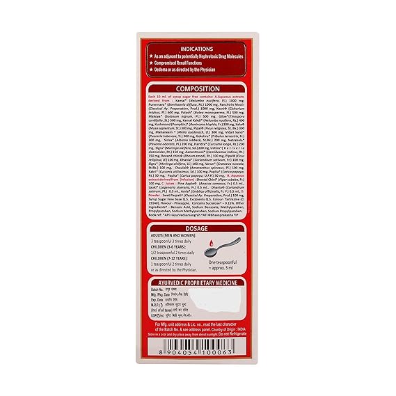 Neeri KFT Sugar-Free Ayurveda Syrup is a kidney functional toner that acts as a potent antioxidant, immune-modulator and nephron-protective, which may help efficiently normalise the deviated functional parameters of the kidney. The phytoconstituents present in the formulation may help restore normalcy in functional parameters and slow down the progression of acute and chronic kidney functional insufficiency.