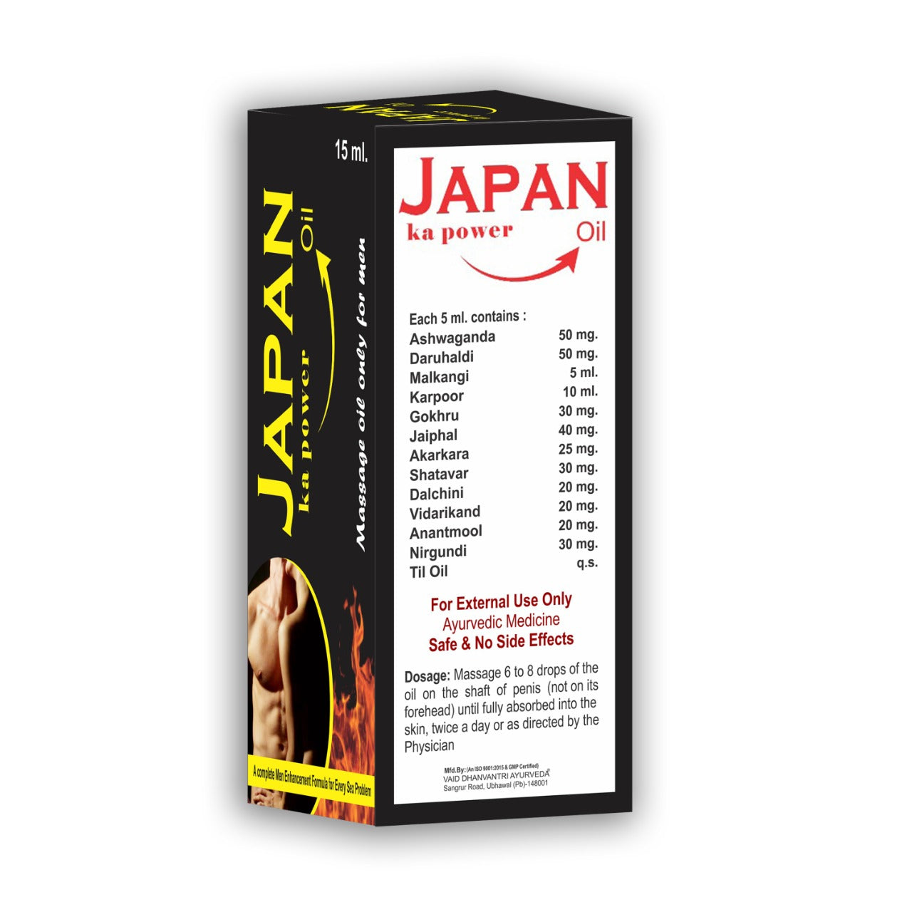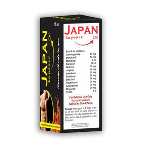 Japan Ka Power Oil is traditional Ayurvedic massage oil commonly used to support male wellness and vitality. It is formulated using a blend of natural herbs and essential oils believed to improve blood circulation and support stamina and strength when used regularly as part of a massage routine.