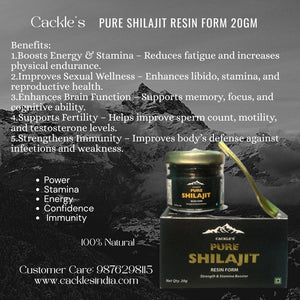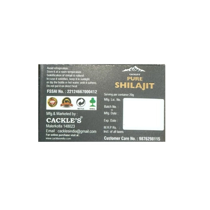 Cackle’s Pure Shilajit Resin: a natural substance found in the Himalayas, is believed to offer a variety of health benefits, including boosting energy levels, improving cognitive function, and supporting bone and muscle health. It's also thought to have antioxidant, anti-inflammatory, and antiviral properties, thanks to its fulvic acid content. Additionally, shilajit has been traditionally used to enhance male fertility and may help with altitude sickness.