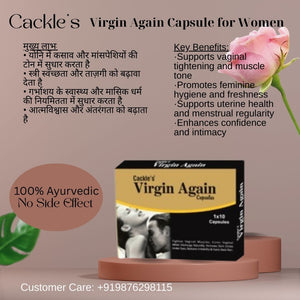 Rediscover your inner confidence and comfort with Virgin Again Capsules, a carefully formulated herbal supplement designed to support female intimate health, vaginal muscle tone, and overall reproductive wellness. Inspired by traditional Ayurvedic and Unani practices, this supplement helps rejuvenate and restore naturally — from the inside out.